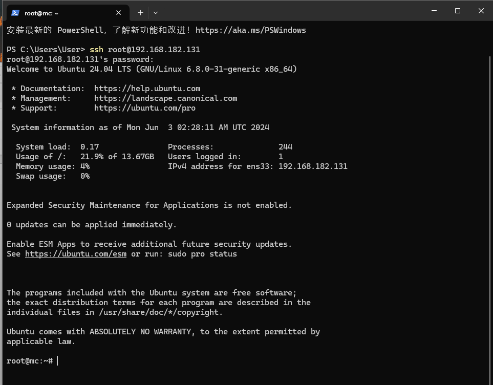 开启 sshd 服务后,你就可以连接到这台服务器了。