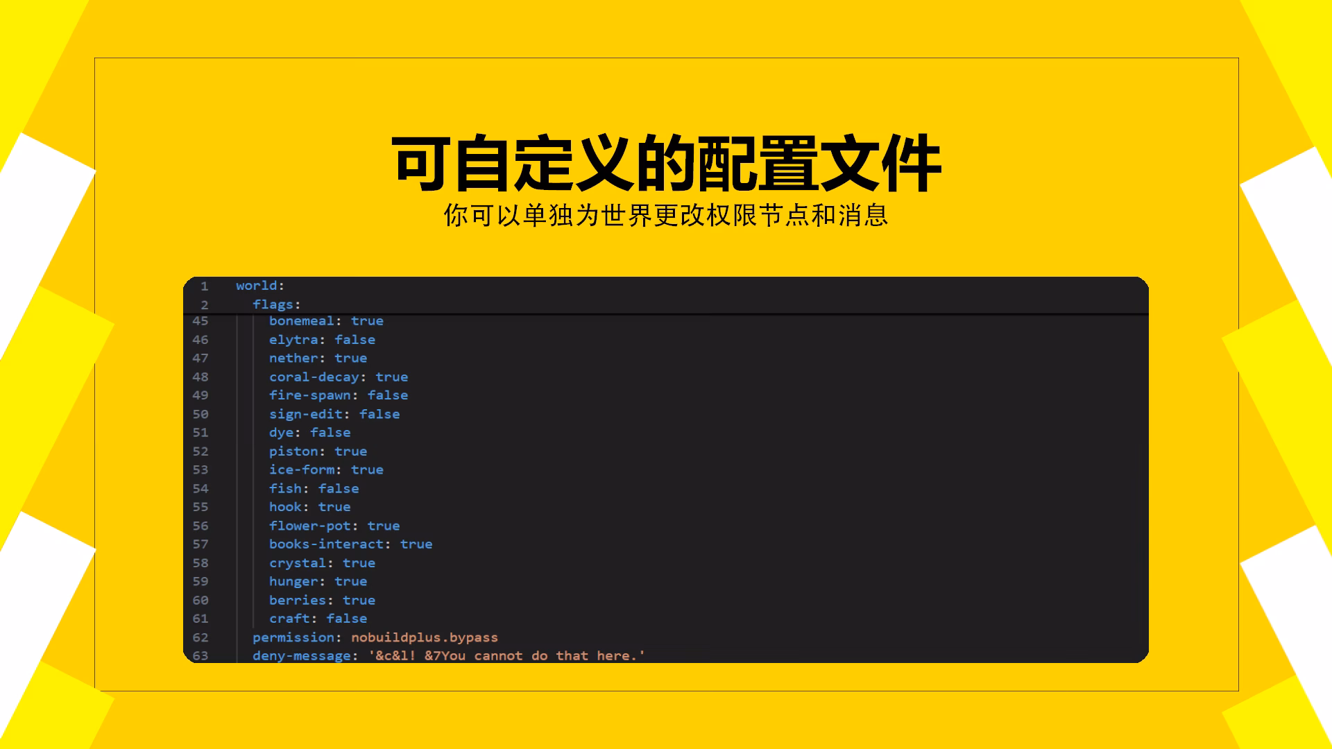 建设阶段Java 插件世界管理保护 - NoBuildPlus本页总览NoBuildPlus 链接 信息SpigotMC https://www.spigotmc.org/resources/nobuildplus.101815MineBBS https://www.minebbs.com/resources/.8101GitHub https://github.com/Ez4p1xEL/NoBuildPlus 和上面 WorldGuard 相比更简单易上手的世界保护插件 Bstats
