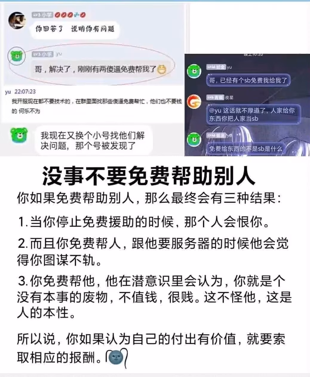 - 不要把群和人当做搜索引擎 (除非打钱了)。